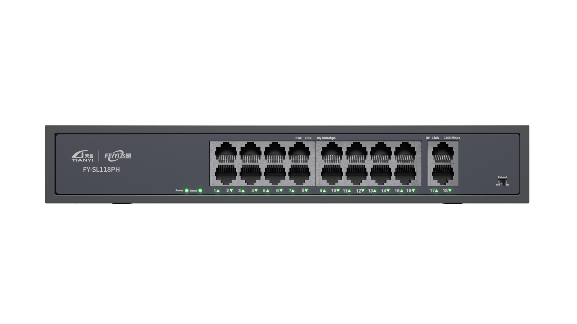 | LED指示燈 | PWR電源指示燈 1-18 Act/Link指示燈 Extend模式指示燈 |